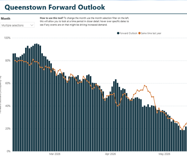 The latest Forward Outlook indicates the current levels of forward-looking accommodation occupancy in Queenstown to help you choose a time when Queenstown will deliver the optimal visitor experience for your clients.